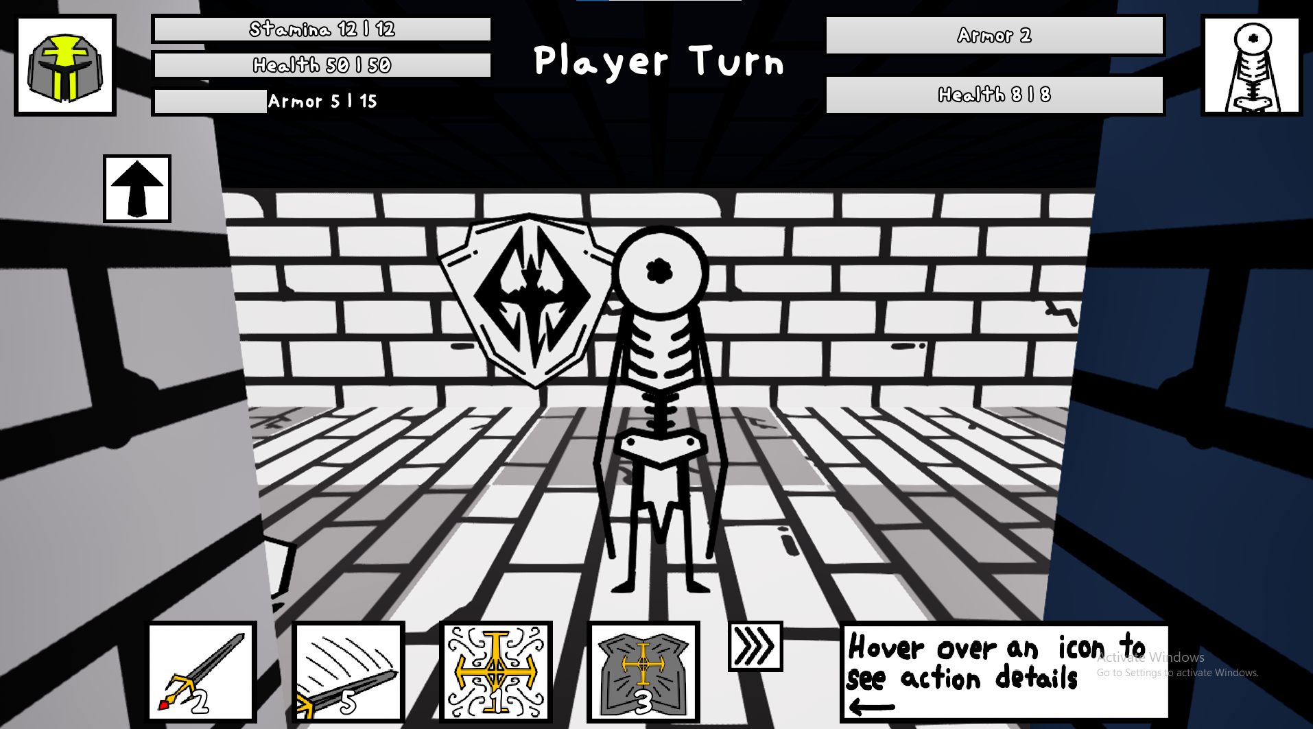 - Walk into Enemies to Engage in Combat or into Doors to Interact