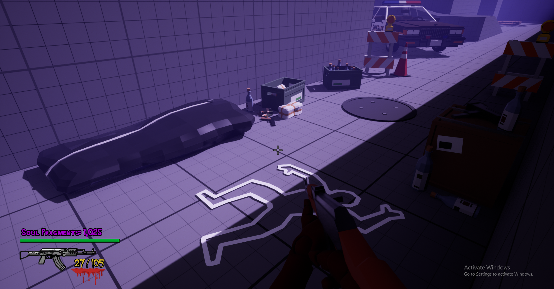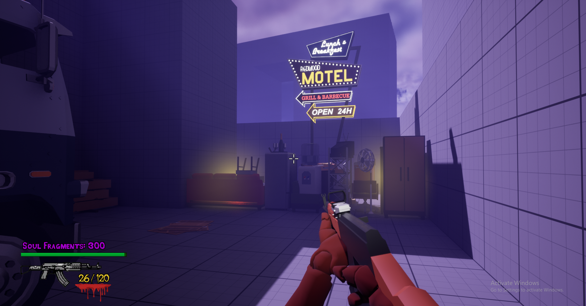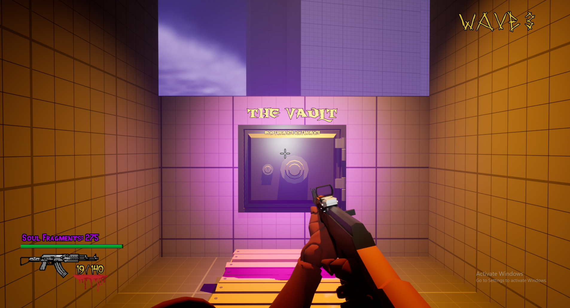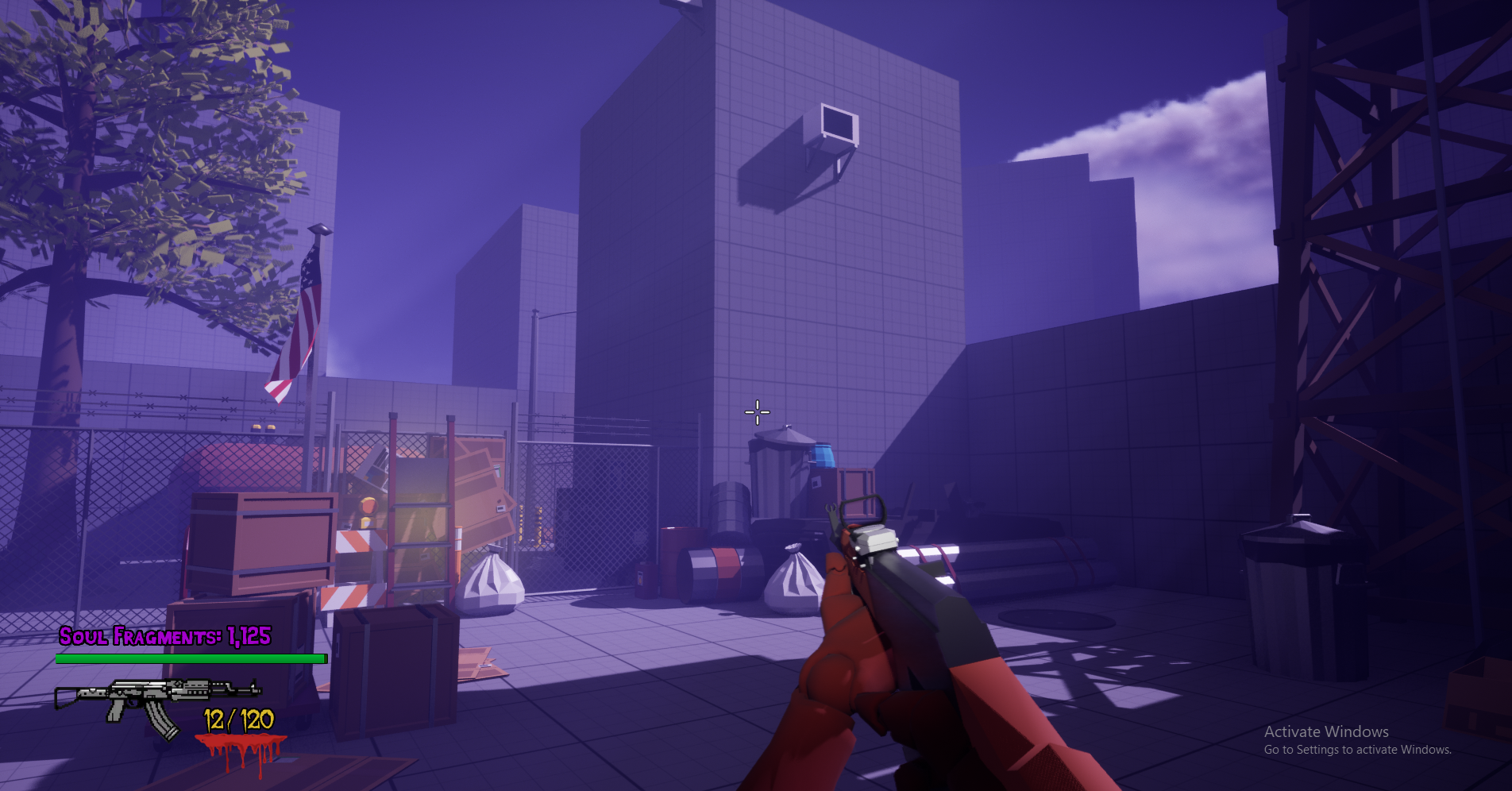 (Currently the game only has one gun, but I am working on adding others, as well as, an upgrade work bench. Spend fragments and collect scrap to use at workbenches to upgrade your weapon in each match. Increase damage, reload speed, decreased ADS time, etc.)